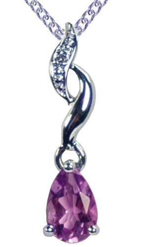 9ct White Gold Fancy Diamond Twist with Teardrop Amethyst Pendant on 46cm Curb Chain