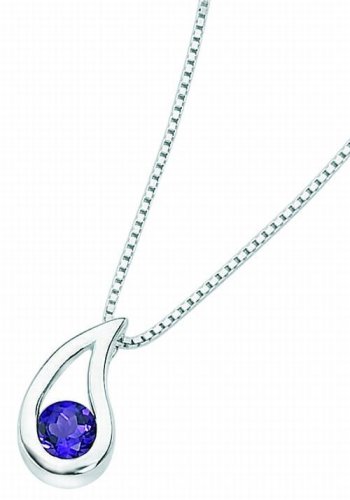 Elements Sterling Silver Ladies' P2621M Amethyst Checkerboard Pendant. 46cm Box Chain
