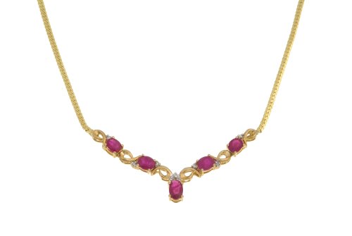 Ladies' Diamond and Ruby Necklace, Prong Set, 9ct Yellow Gold Herringbone Chain, 46cm Length, 0.04 Carat Diamond Weight, Model PNE1075 (DP0405/R
