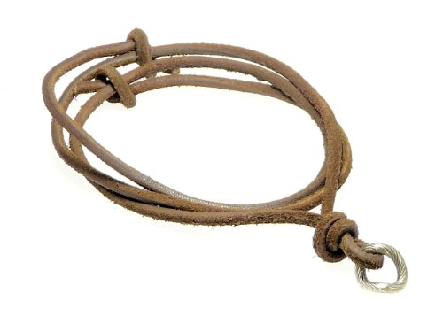 Neptune Giftware mens surf surfer dark brown leather cord necklace / leather choker / leather necklace with metal pendant. This beautiful mens leather necklace is made from one long piece of 4mm thick leather cord which has been knotted together to make this beautiful piece of mens leather jewellery. To add to the cool look of the surfer necklace there is a brushed silver colour pendant which measures approximately 1.5 - 2cm in diameter. The handmade surfer necklace is fastened using a slipknot which you simply widen, slip on, then pull the cords to the desired size, therefore this leather cord necklace is fully adjustable and one size will fit all. The leather necklace for men is fully adjustable from 30 cm all the way up to 62 cm so can be worn as a surf choker or a surf necklace, you decide. In fact due to the versatile slipknot, the leather cord necklace could even be worn as a bracelet but obviously would need to be wrapped around the wrist a few times. Although this leather necklace is classed as a mens leather necklace it's simple and stylish design mean that it could also be a cord necklace for women or boys and girls. A nice light and stylish surf necklace suitable for anyone.