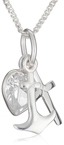 Silver Cubic Zirconia Faith/Hope/Charity Pendant + Curb Chain