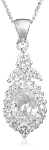 Silver White Cubic Zirconia Tear Pendant + Curb Chain 46cm